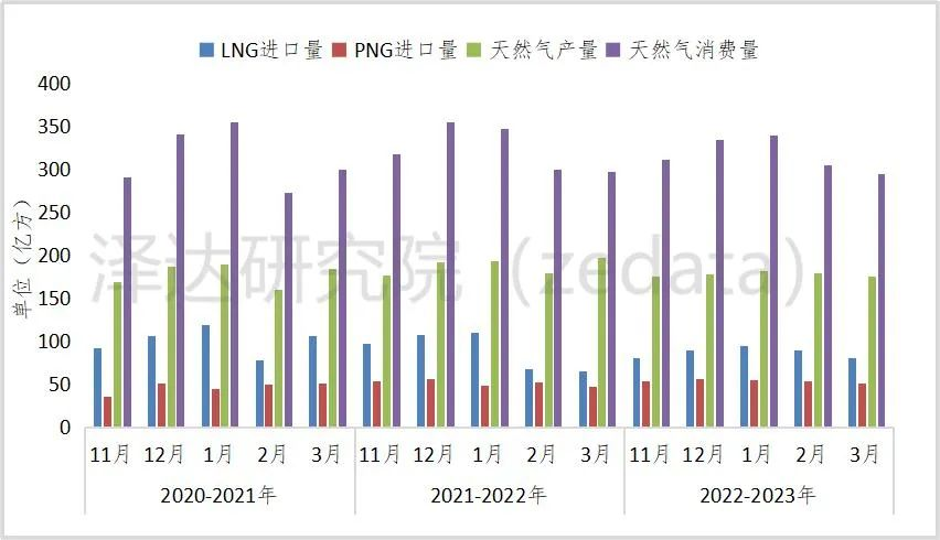 图3 2020-2023供暖季中国天然气供需情况及预测